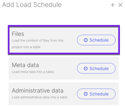 Data can be loaded into tables manually or automatically. To load data automatically, you can set up a schedule. The schedule specifies which files’ data should be automatically loaded into a table, when those files are uploaded to ICA or created by an analyses on ICA. Active schedules will check for new files every 24 hours.
